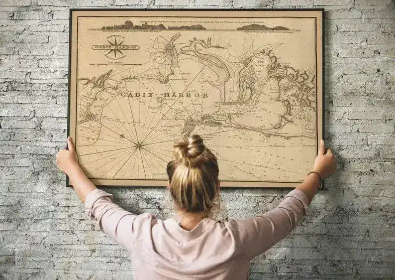 Nautical Map of Cadiz Harbor 1814| Old Map Wall Decor | MAIA HOMES