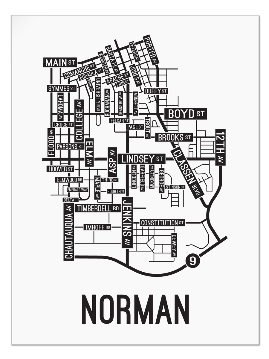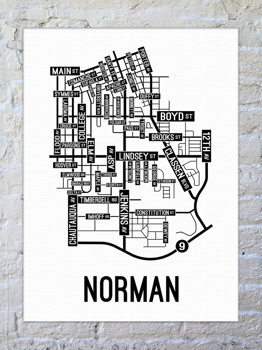 Norman, Oklahoma Street Map Canvas | School Street Posters